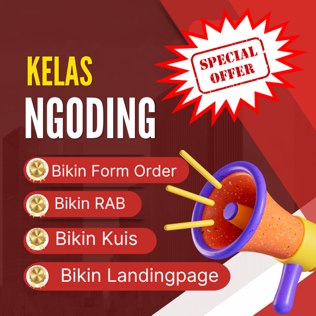 Gabung saja dengan kelas coding kami dan pelajari cara membuat form order yang profesional, menyusun RAB yang akurat, membuat kuis interaktif, hingga merancang landing page yang memikat pelanggan.